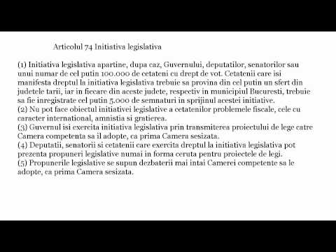 Potrivit Constitutiei Romaniei(articolele 74 si 150)la procesul de elaborare a legilor pot participa atat autoritatile statului(Parlamentul)ccat si cetateni care au dreptul la initiativa legislativa(care trebuie sa asigure continuturilor un caracte obligatoriumsa cuprinda diferite reguli,textul trebuie sa fie clar,fluent si inteligibil si de asemenea sa nu contina termeni cu incarcatura emotionala) ce are loc in anumite conditii(persoanele sa fie cetateni romani cu drept de vot si sa provina din toate zonele tarii)dealungul mai multor etape ce implica: